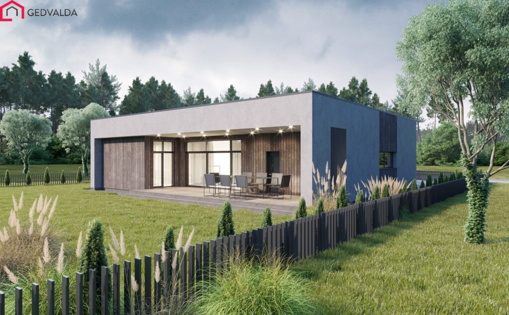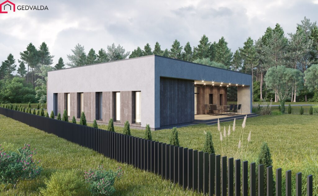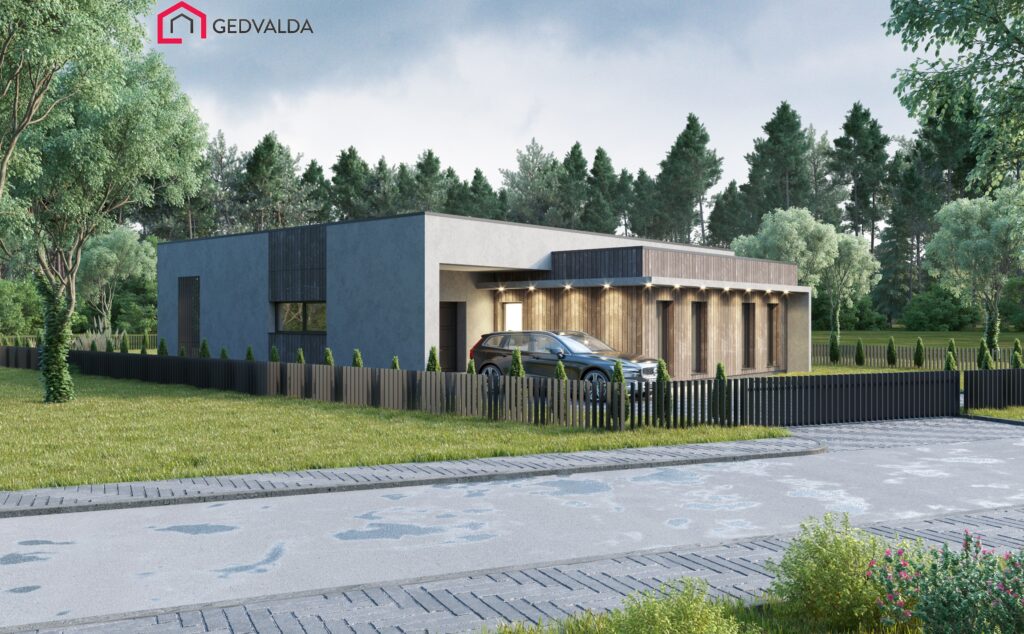 Vieno aukšto modernus gyvenamasis namas. Gyvenamajame name suprojektuoti trys miegamieji kambariai. Suaugusiųjų miegamasis turi privačią drabužinę ir tualeto – vonios kambarį. Numatytas darbo kambarys. Suprojektuoti dar du atskiri tualeto ir vonios kambariai. Name suprojektuota svetainės- virtuvės patalpa. Kiemo zonoje įrengiama terasa, į kurią patenkama iš svetainės- virtuvės patalpos. Numatyta pagalbinė patalpa. Suprojektuotas garažas skirtas vienam automobiliams.