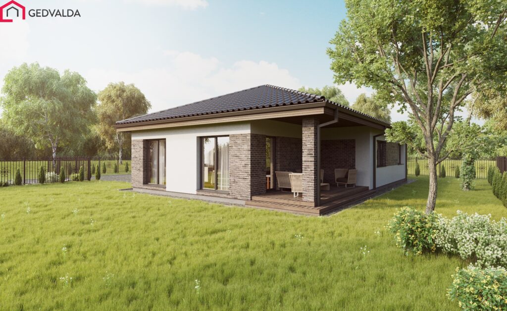 Klasikinio dizaino vieno aukšto gyvenamasis namas. Gyvenamajame name suprojektuoti trys miegamieji kambariai. Suaugusiųjų miegamasis turi privačią drabužinę. Taip pat įrengiamas bendras tualetas – vonia. Numatyta pagalbinė patalpa. Name suprojektuota erdvi svetainės- virtuvės patalpa. Kiemo zonoje įrengiama terasa, į kurią patenkama iš svetainės- virtuvės patalpos.