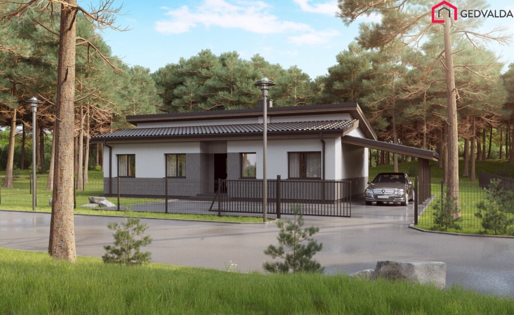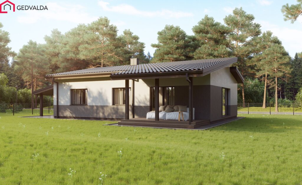 Vieno aukšto gyvenamasis namas. Name suprojektuoti trys erdvūs miegamieji kambariai. Namuose numatytas bendras tualetas – vonia. Name suprojektuota erdvi svetainės- virtuvės patalpa. Kiemo zonoje įrengiama terasa, į kurią patenkama iš svetainės- virtuvės patalpos. Prie pastato numatyta stoginė automobiliui.
