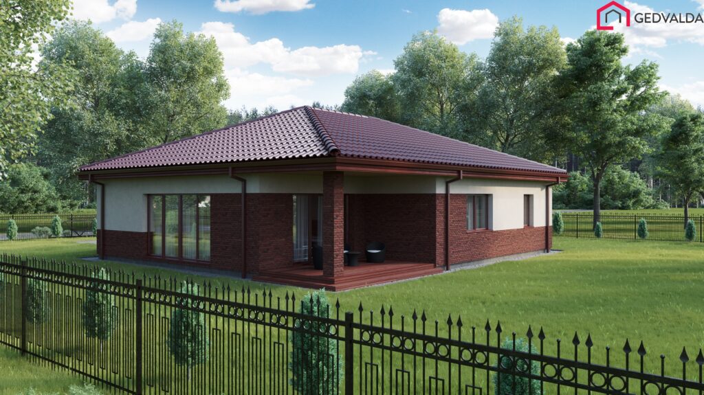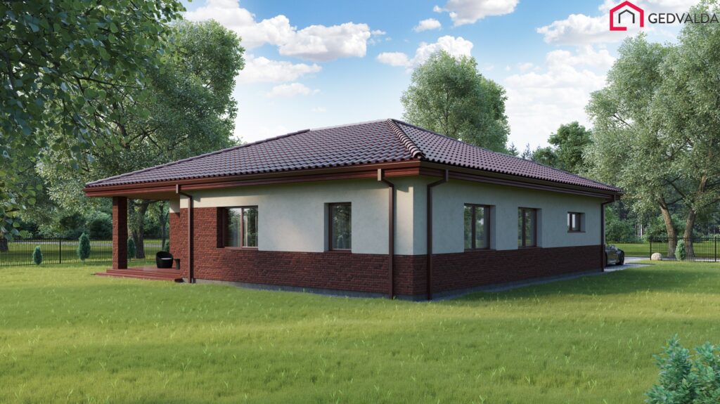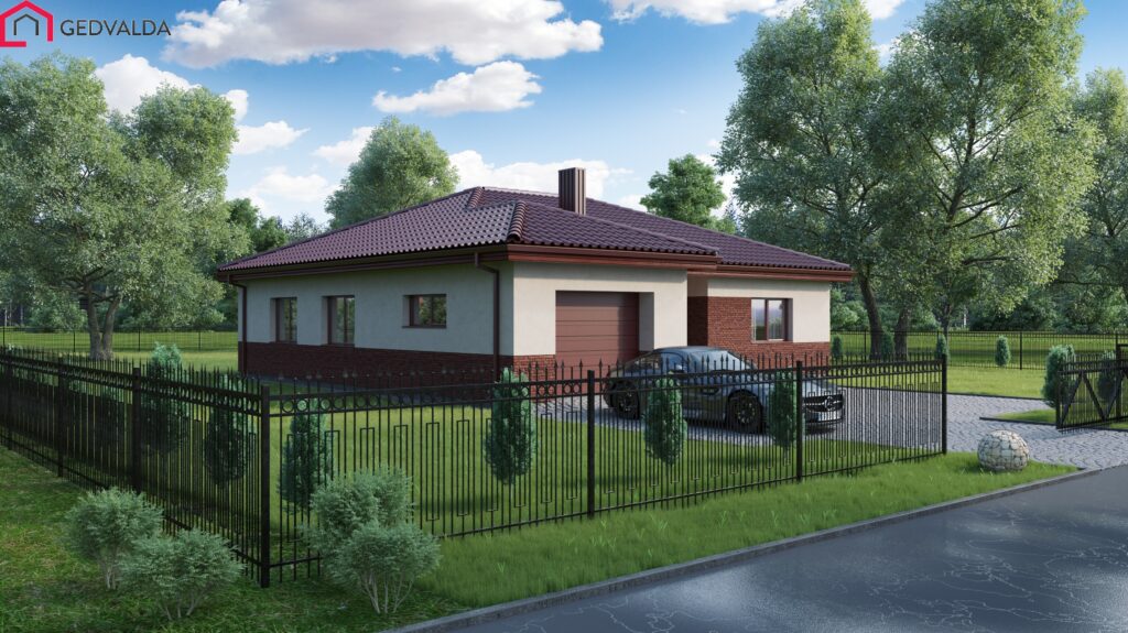Vieno aukšto klasikinis gyvenamasis namas. Gyvenamajame name suprojektuoti trys miegamieji kambariai. Suaugusiųjų miegamasis turi privačią drabužinę. Numatyti atskiri tualeto ir vonios kambariai. Name suprojektuota erdvi svetainės- virtuvės patalpa. Kiemo zonoje įrengiama terasa, į kurią patenkama iš svetainės- virtuvės patalpos. Numatyta pagalbinė patalpa. Suprojektuotas garažas automobiliui.