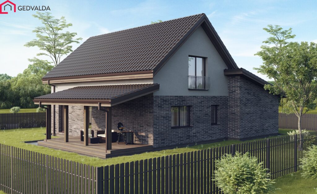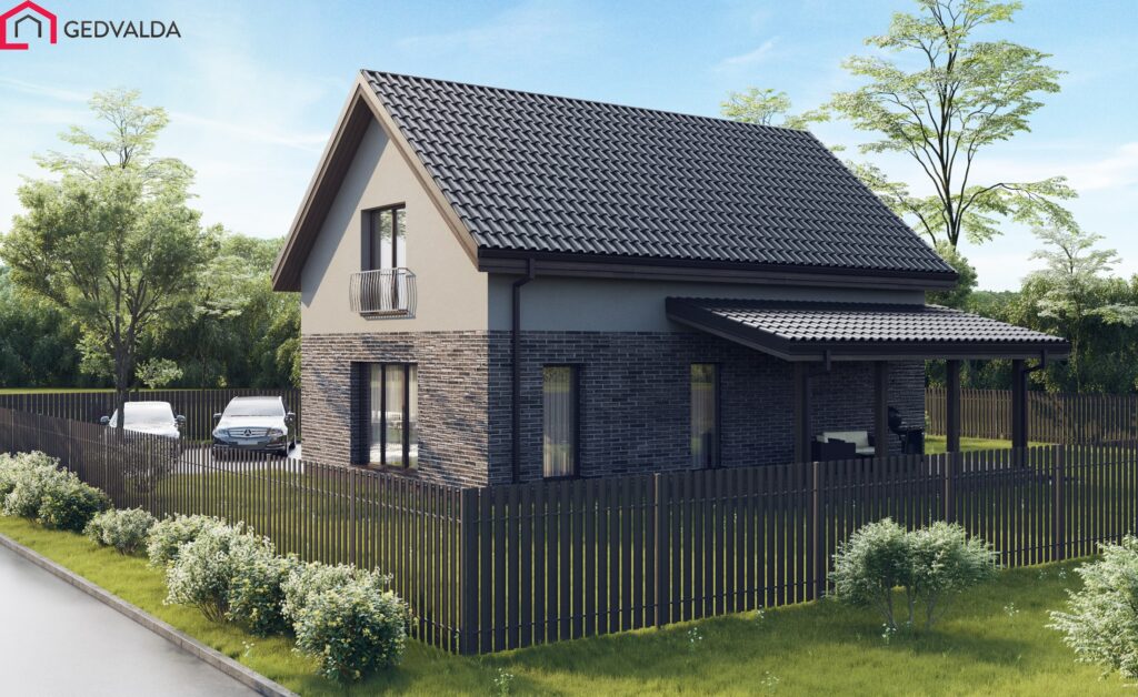 Klasikinio dizaino dviejų aukštų gyvenamasis namas. Namo antrajame aukšte suprojektuoti du miegamieji kambariai su drabužinėmis. Numatytas bendras tualeto – vonios kambarys. Pirmajame aukšte numatytas darbo kambarys ir pagalbinė patalpa. Numatytas dar vienas tualeto kambarys. Suprojektuota svetainės- virtuvės patalpa. Įrengiama terasa po stogu, į kurią patenkama iš svetinės – virtuvės patalpos. Gyvenamasis namas turi garažą skirtą vienam automobiliui.
