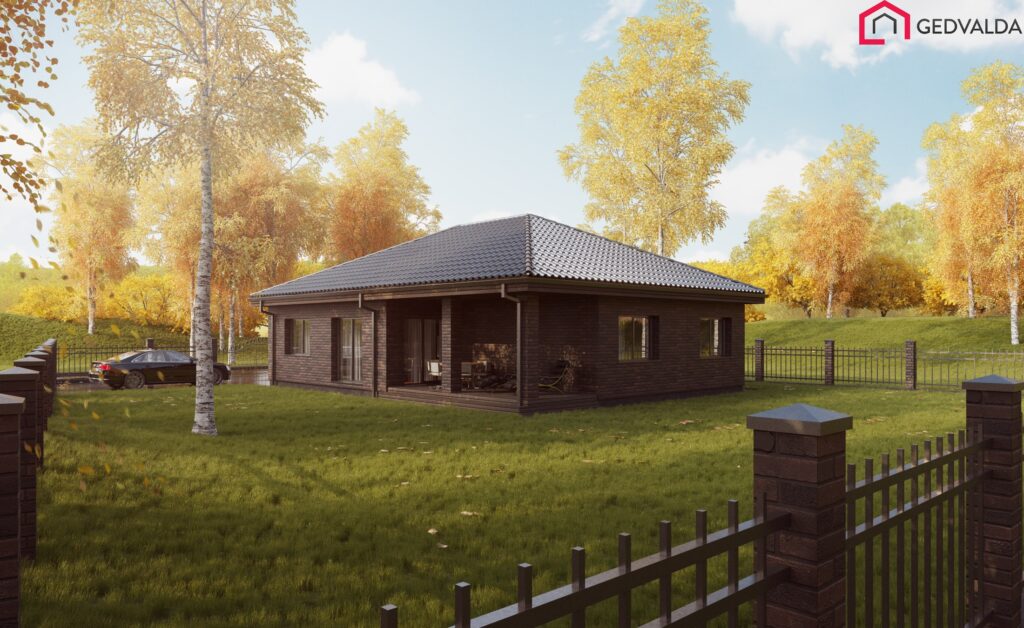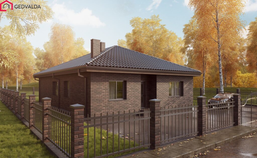 Klasikinio dizaino vieno aukšto gyvenamasis namas. Name suprojektuoti trys miegamieji kambariai. Name numatytas bendras tualetas – vonia. Suprojektuota pagalbinė patalpa. Name numatyta erdvi svetainės- virtuvės patalpa. Kiemo zonoje įrengiama terasa, į kurią patenkama iš svetainės- virtuvės patalpos.